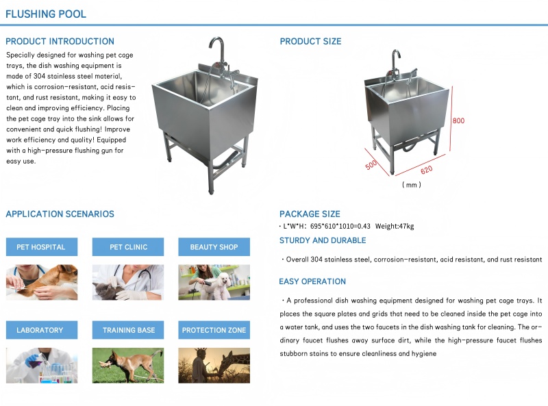 The flushing basin is made of 304 stainless steel, providing convenience for pet hospitals.